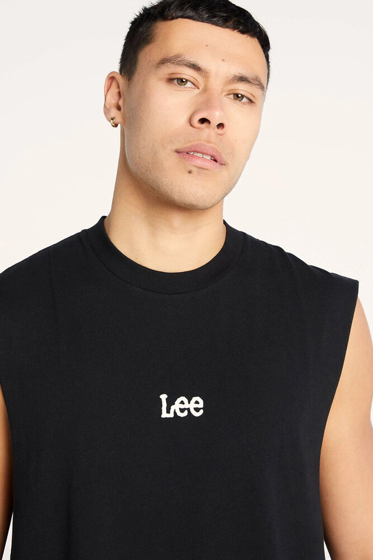Lee’s muscle is a relaxed fit with cut raw armholes, designed to be worn relaxed through the body, featuring seasonal artwork