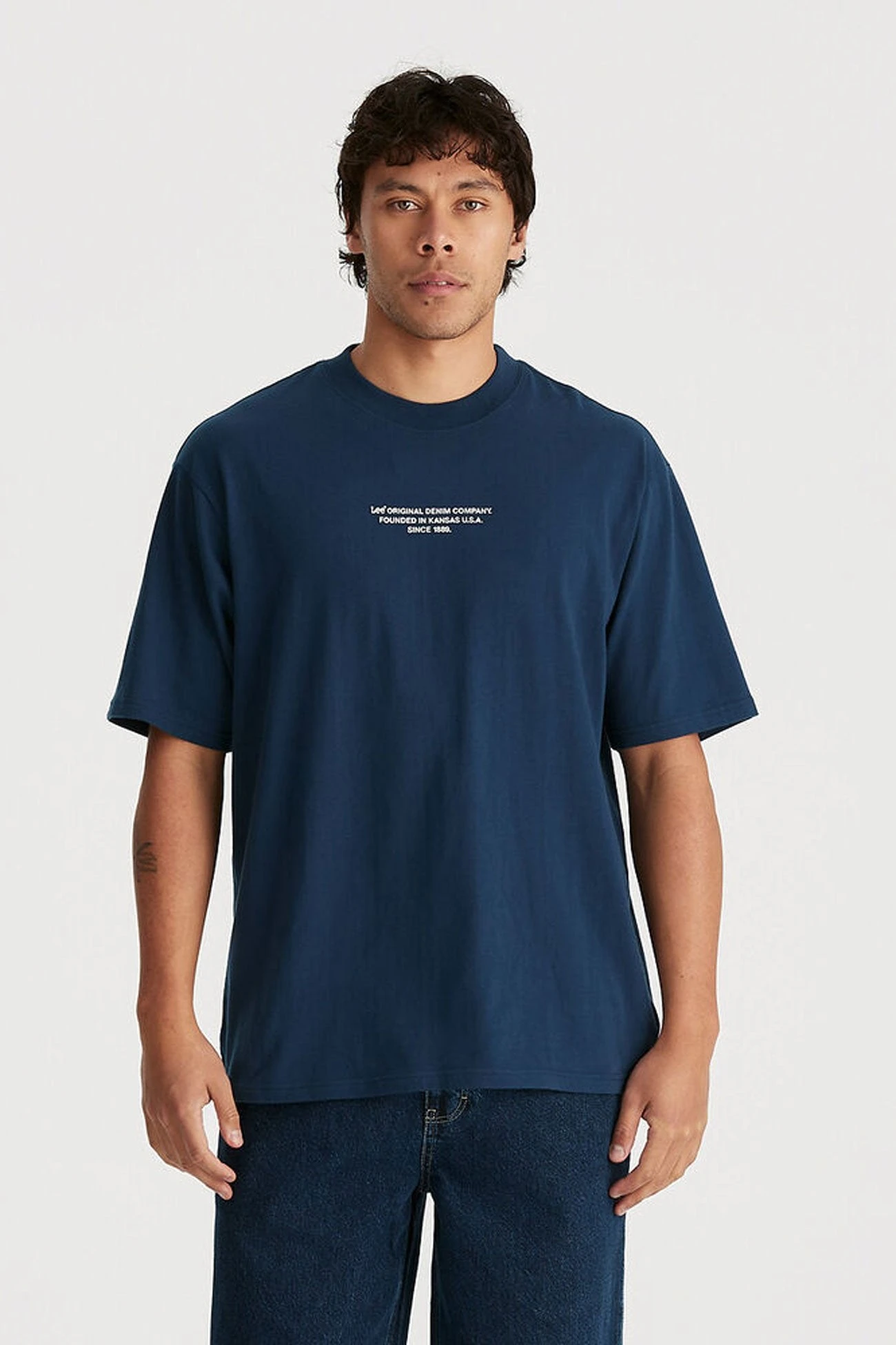Lee’s Denim Co Baggy Tee in Old Navy has been made to fit loose and baggy and features a centre Lee logo inspired by a workwear graphic. It has been made from an open-end recycled cotton blend that has a soft-to-touch hand feel and drape when worn.