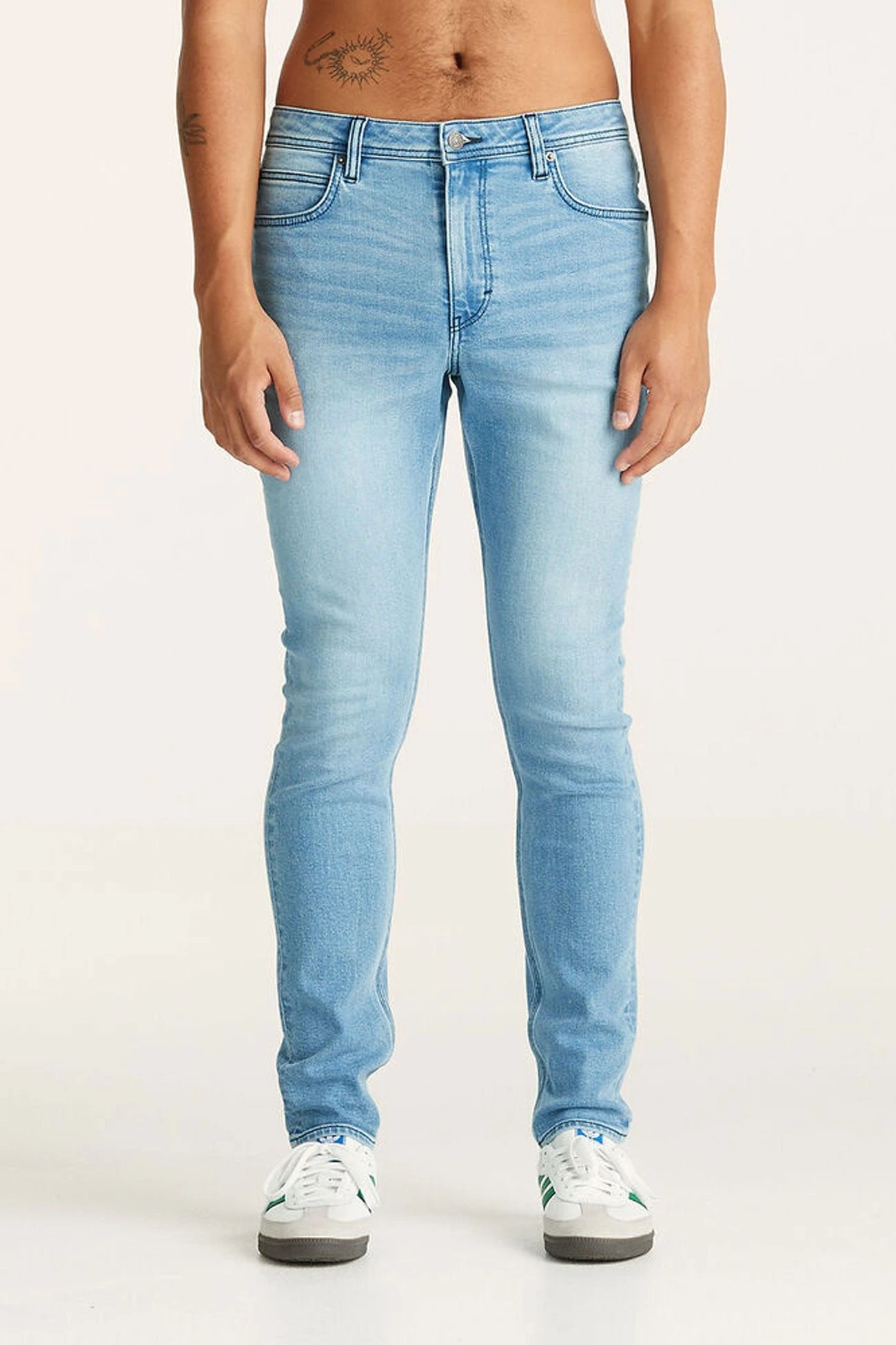 The Z-One jean is our main staple in the skinny fit library, featuring a modern take on the rise and leg and offering one of the more comfortable skinny jeans in the market designed to suit a variety of leg shapes. Made up of a clean, bright light wash inspired by the Lee 90s archives it features contrast stitching and modern finished metal hardware.