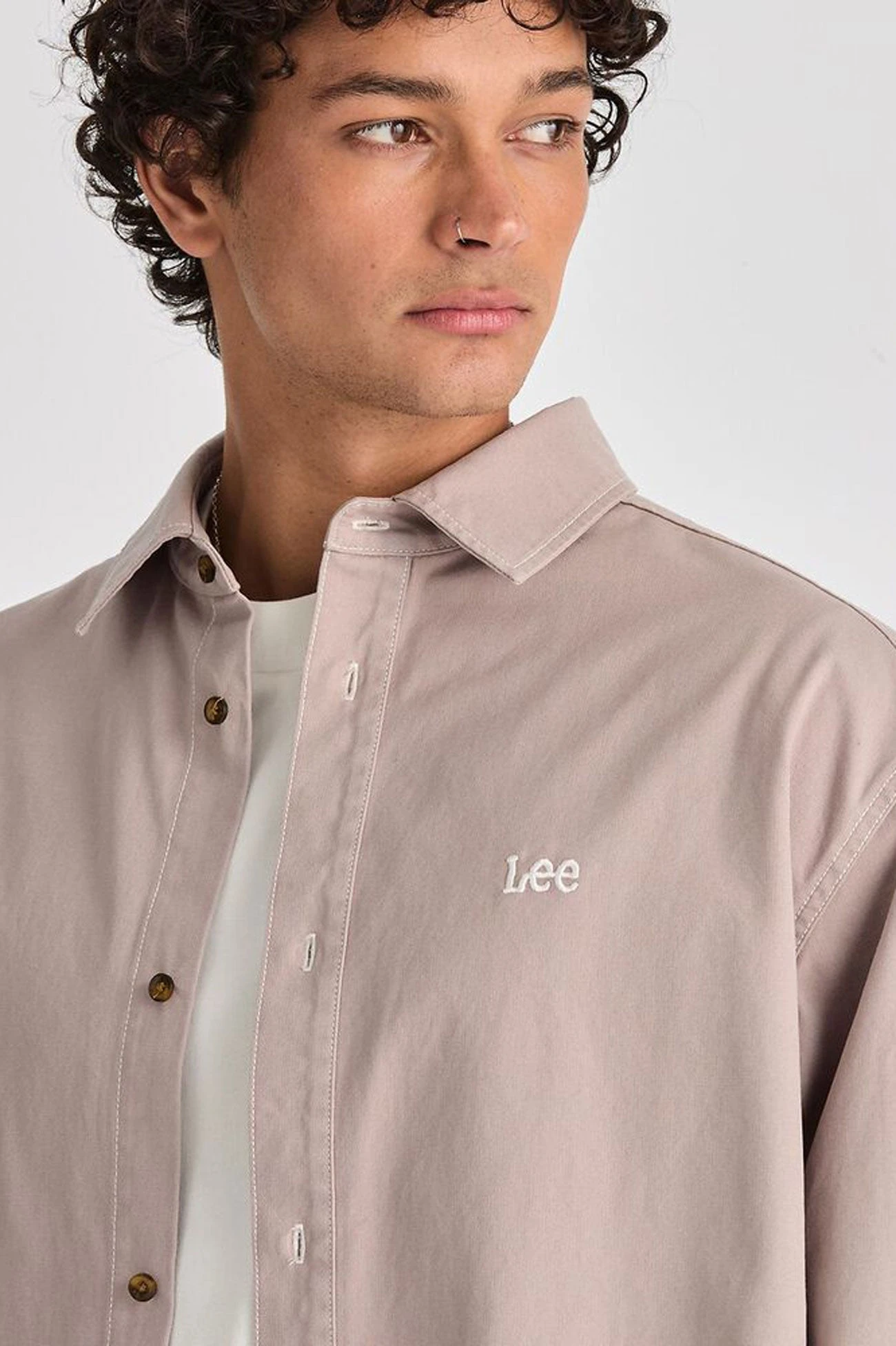 The Park Shirt is a relaxed boxy, long sleeve shirt . Crafted in a midweight, compact twill cotton with a soft hand feel. This shirt is a three piece collar button up, featuring a left chest embroidered Lee logo.